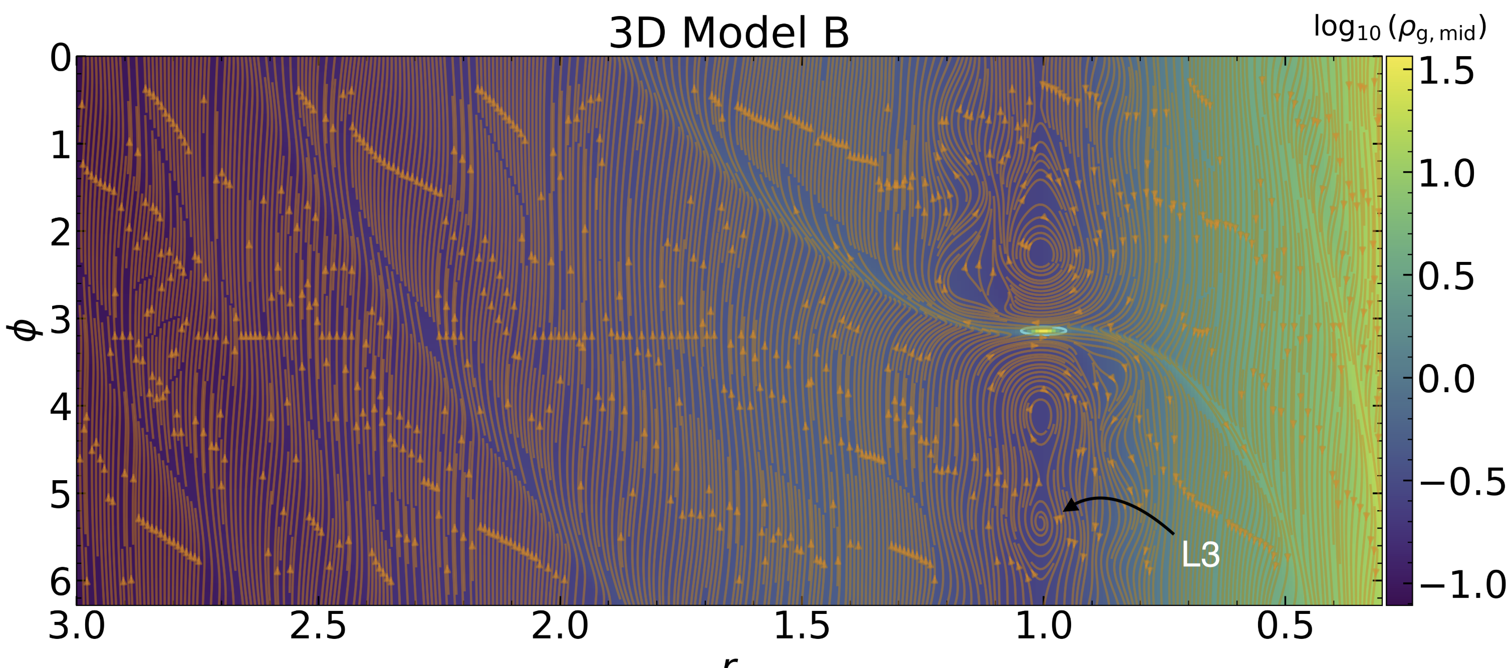 This image was constructed to find if the model had vortex formation, more on that later. I mistakenly assumed that these circles nearby the planet are actually vortices (I was wrong.).